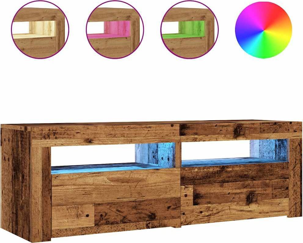 vidaXL Szafka pod TV z oświetleniem LED, stare drewno, 120x35x40 cm