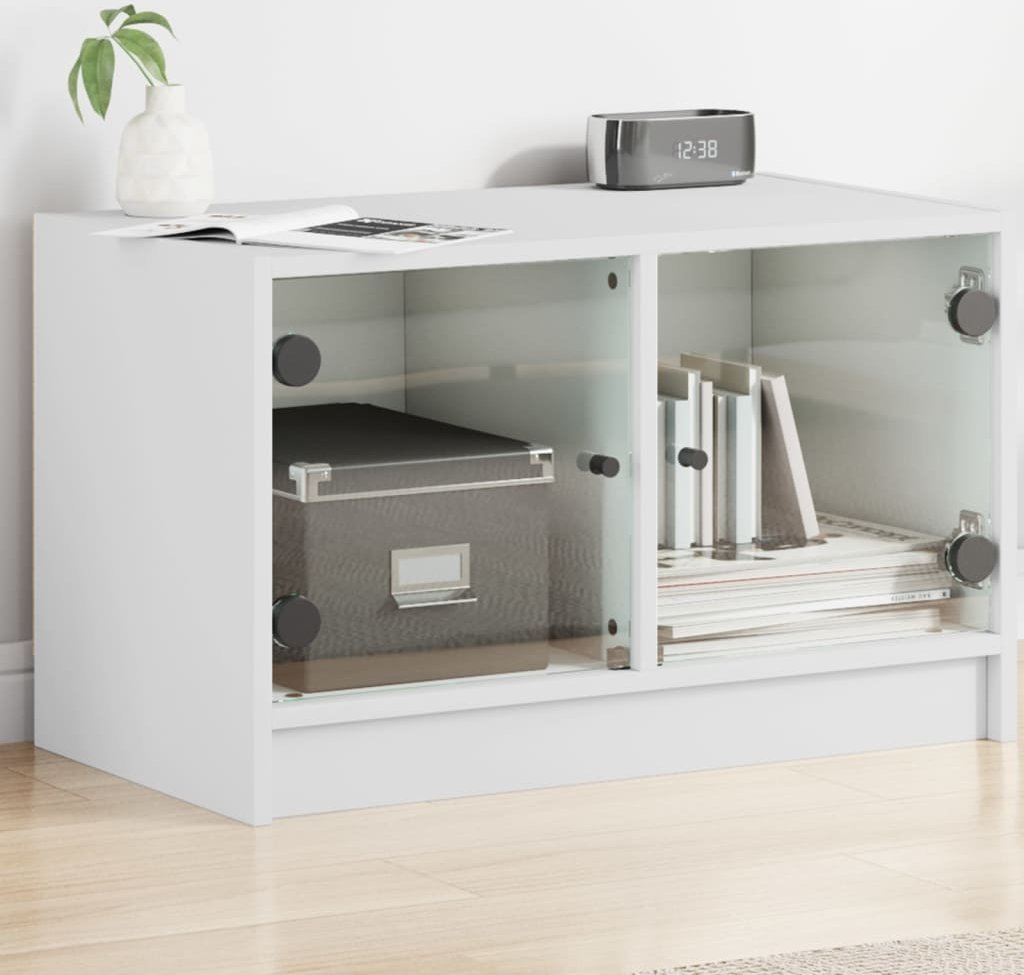 vidaXL Szafka TV ze szklanymi drzwiami, biała, 68x37x42 cm