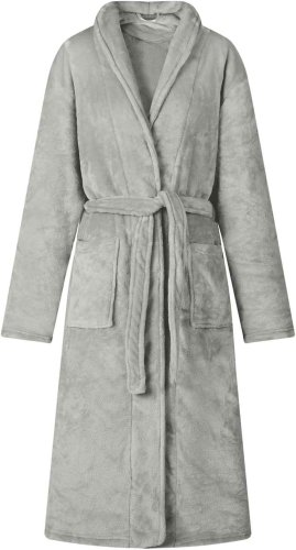 Szlafrok bez kaptura w odcieniu szarości, stworzony z wysokiej jakości flaneli, to doskonały wybór na zimowe dni. Oferuje ciepło i wygodę, otulając miękkim dotykiem, co czyni go idealnym towarzyszem podczas leniwych poranków oraz przytulnych wieczorów. Jego prosty, a zarazem elegancki design sprawia, że harmonijnie wpisuje się w każde wnętrze, łącząc styl z praktycznością.
