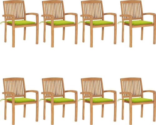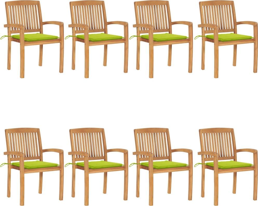 vidaXL Sztaplowane krzesła ogrodowe z poduszkami, 8 szt., tekowe