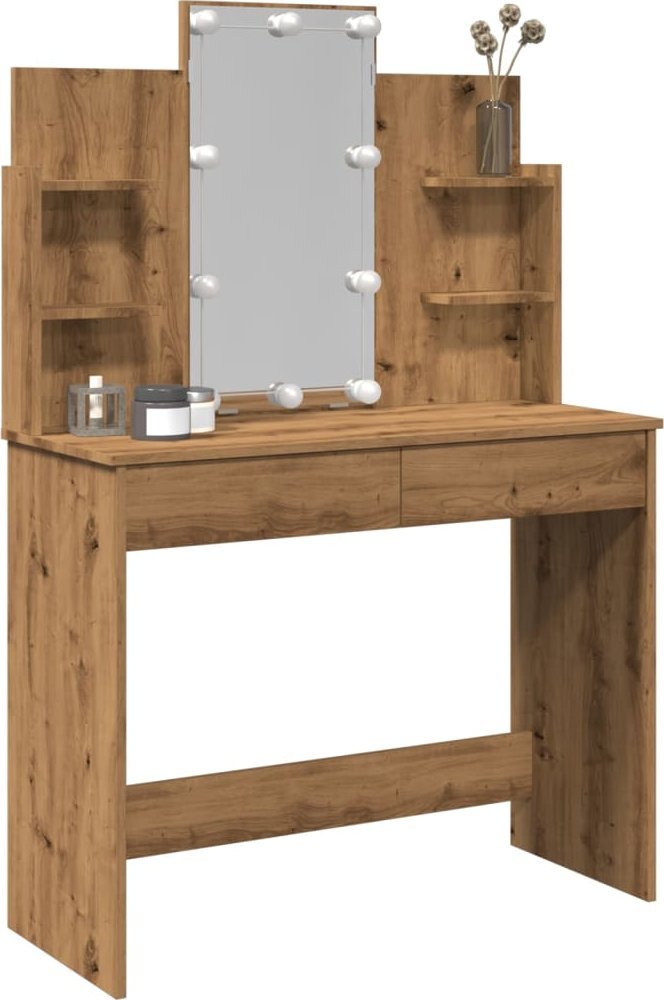 vidaXL Toaletka z oświetleniem LED, dąb artisan, 96x40x142 cm