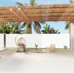 Ta ogrodowa markiza boczna o dużej powierzchni stanowi skuteczny sposób na rozprawienie się z ciągłym wiatrem i nisko położonym słońcem oraz zapewnienie sobie prywatności.