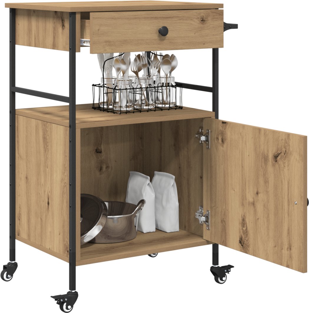 vidaXL Wózek kuchenny Dąb rzemieślniczy 56x43x89,5 cm