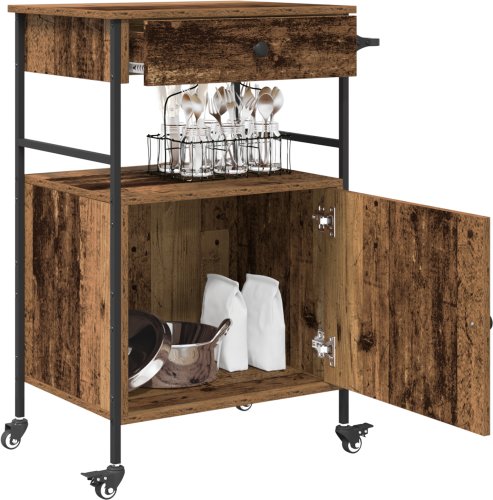 Ten wózek kuchenny to świetne połączenie stylowego i praktycznego przechowywania do Twojej kuchni lub jadalni. Z rustykalnym wykończeniem ze starego drewna i industrialnym charakterem, nie tylko dobrze wygląda, ale też jest bardzo użyteczny. To super wybór na codzienne użytkowanie lub specjalne okazje.