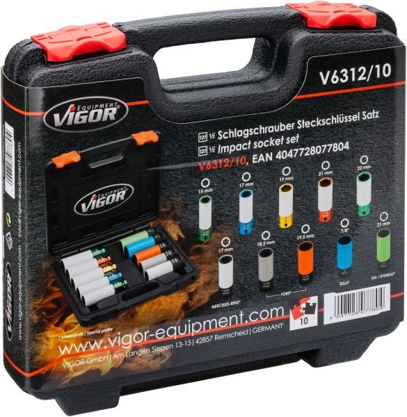 Vigor Slagskruemaskine-topnøgleindsats #####Vierkant, 1/2 (12,5 mm) 10 dele V6312/10