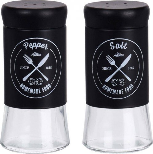 PRAKTYCZNY - Zestaw dwóch pojemników solniczki i pieprzniczki. SOLIDNY - Wykonany ze szkła oraz czarnego metalu z efektownymi zdobieniami. ELEGANCKI - Będzie stanowić piękną dekorację stołu oraz kuchni. UNIWERSALNY - Sprawdzi się do użytku codziennego jak i podczas uroczystych śniadań, kolacji czy obiadów. ŁATWE UŻYTKOWANIE - Napełnianie oraz mycie solniczki jest niezwykle proste. Zestaw dwóch pojemników solniczki i pieprzniczki o wymiarach 11 x 5,5 cm. Wykonane ze szkła oraz czarnego metalu, posiadają efektowne zdobienie. Idealna do użytku codziennego, ale również przydatna w lokalach gastronomicznych. Pięknie prezentują się na stole. Wyprodukowano zgodnie z europejskimi standardami.