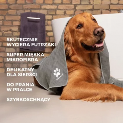 Czyści i osusza zwierzaka, a miękka w dotyku faktura „wafla”, która delikatnie usuwa zabrudzenia.