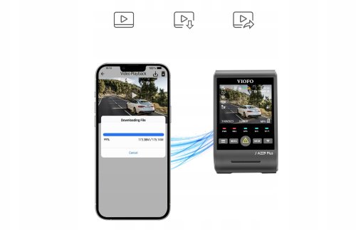 VIOFO A229 PLUS 3CH jest wyposażony w wbudowany moduł Wi-Fi, który działa na dwóch pasmach (2.4GHz i 5GHz), co umożliwia szybkie przesyłanie nagrań na smartfona. Dodatkowo, moduł Bluetooth pozwala na łatwe połączenie z innymi urządzeniami, co zwiększa komfort użytkowania.
