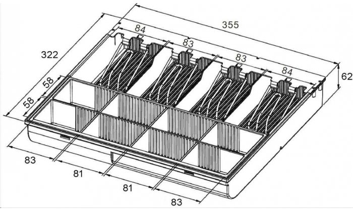 Segregator EKO9004* to wymienny element, który można z łatwością umieścić w szufladzie kasowej Virtuos S-410. Jego prostota montażu sprawia, że korzystanie z niego jest niezwykle komfortowe, a wymiana segregatora nie wymaga żadnych dodatkowych narzędzi.