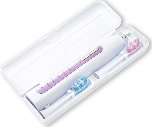 Dokładne czyszczenie przestrzeni międzyzębowych i okolic dziąseł- zwłaszcza miejsc, do których nie docierają tradycyjne szczoteczki. Efektywne usuwanie płytki bakteryjnej wysoką energią drgań. Masaż i wzmocnienie dziąseł. Wybielanie. Utrzymywanie czystości aparatów nazębnych, ortodontycznych, koron, mostów, itp. Idealna w przypadku braku techniki i cierpliwości niezbędnych do prawidłowego mycia tradycyjną szczoteczką. Zawartość opakowania: 1 szczoteczka, 2 końcówki, 1 ładowarka indukcyjna, 1 etui, 1 instrukcja obsługi.
