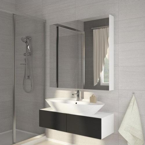 Szafka łazienkowa DELLA 80 to eleganckie połączenie lustrzanych drzwiczek z praktycznymi i pojemnymi półkami. Do szafki można domówić oświetlenie z włącznikiem pojemnościowym, wystarczy dotknąć szafkę i włączy się światło.