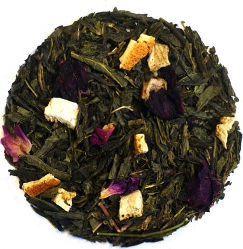 Chińska Sencha z dodatkiem owoców egzotycznych i płatków kwiatowych, z naturalnym aromatem....