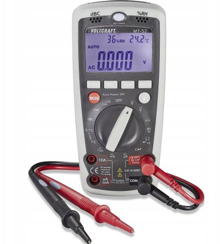 Multimetr cyfrowy VOLTCRAFT MT-52 to wszechstronne urządzenie, które łączy w sobie różnorodne funkcje pomiarowe w jednym kompaktowym narzędziu. Dzięki możliwości pomiaru pięciu różnych parametrów, MT-52 stanowi doskonałe rozwiązanie dla każdego, kto poszukuje niezawodnego i precyzyjnego miernika w swoim warsztacie lub domu.