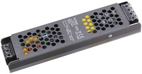 Zasilacz V-TAC charakteryzuje się niewielkimi rozmiarami, co ułatwia jego montaż w ograniczonej przestrzeni, takiej jak profile oświetleniowe czy szafki instalacyjne. Solidna metalowa obudowa z perforacją wentylacyjną skutecznie odprowadza ciepło, co zwiększa niezawodność i wydłuża czas użytkowania.