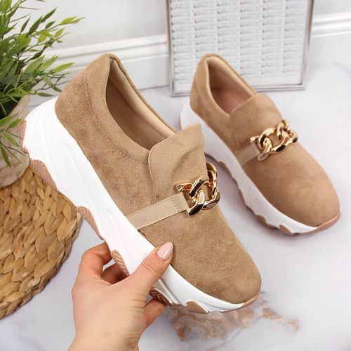 W. Potocki Sneakersy damskie z łańcuchem slip on beżowe Potocki 39