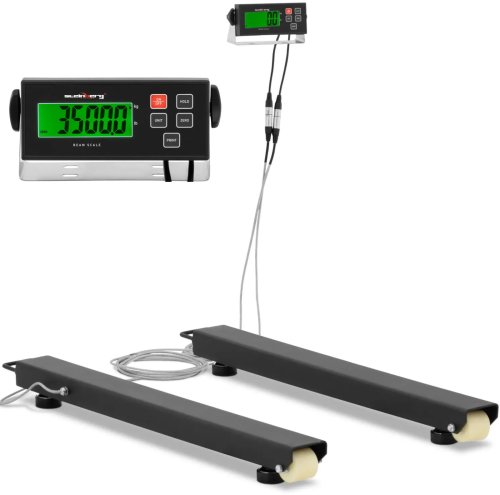 Waga płozowa marki Steinberg Systems pozwala dostosować powierzchnię ważącą do własnych potrzeb. Nada się do zadań specjalnych w rzemiośle, przemyśle, leśnictwie i rolnictwie. Oddzielny wyświetlacz LCD pozwala wygodnie korzystać z urządzenia pomiarowego. Urządzenie mierzy ciężar od 10 kg do 3500 kg z podziałką 500 g. Uzyskane wartości łatwo można odczytać na zewnętrznym wyświetlaczu LCD z podświetleniem. Ekran łatwo podłącza się do wagi za pomocą szybkozłączy i kabla o długości 5 m. Belki ważące o wymiarach 100 x 10 cm wykonane są z wytrzymałej stali węglowej. W zależności od pozycji na podłodze można zwiększyć lub zmniejszyć powierzchnię ważenia. Nóżki z możliwością regulacji wysokości w zakresie 9 mm gwarantują stabilność i dokładne wyniki pomiarów nawet na nierównym podłożu. Waga oferuje praktyczne funkcje, takie jak zatrzymywanie, kalibracja, tarowanie i ważenie dynamiczne (tryb ważenia zwierząt). Można także wybrać pomiędzy jednostkami kg i lb. Waga zasilana jest za pomocą dołączonego zasilacza lub akumulatorów. Model ten charakteryzuje się niesamowitą wytrzymałością przy czasie pracy do 20 godzin. Aby zaoszczędzić energię, urządzenie wyłącza się automatycznie po 180 sekundach bezczynności. Dodatkowo waga posiada port RS232 do przesyłania danych do komputera lub drukarki.