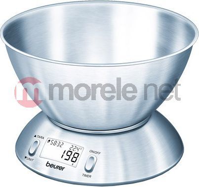 Waga elektroniczna Beurer KS 54, o maksymalnym obciążeniu 5 kg, z dokładnością do 1 g. Wyposażona została w funkcję tary, timer, termometr, a także cyfrowy wyświetlacz z cyframi o wysokości wynoszącej 10 mm. Miejscem na ważone produkty jest misa. Istnieje możliwość przejścia z gramów na uncje.
