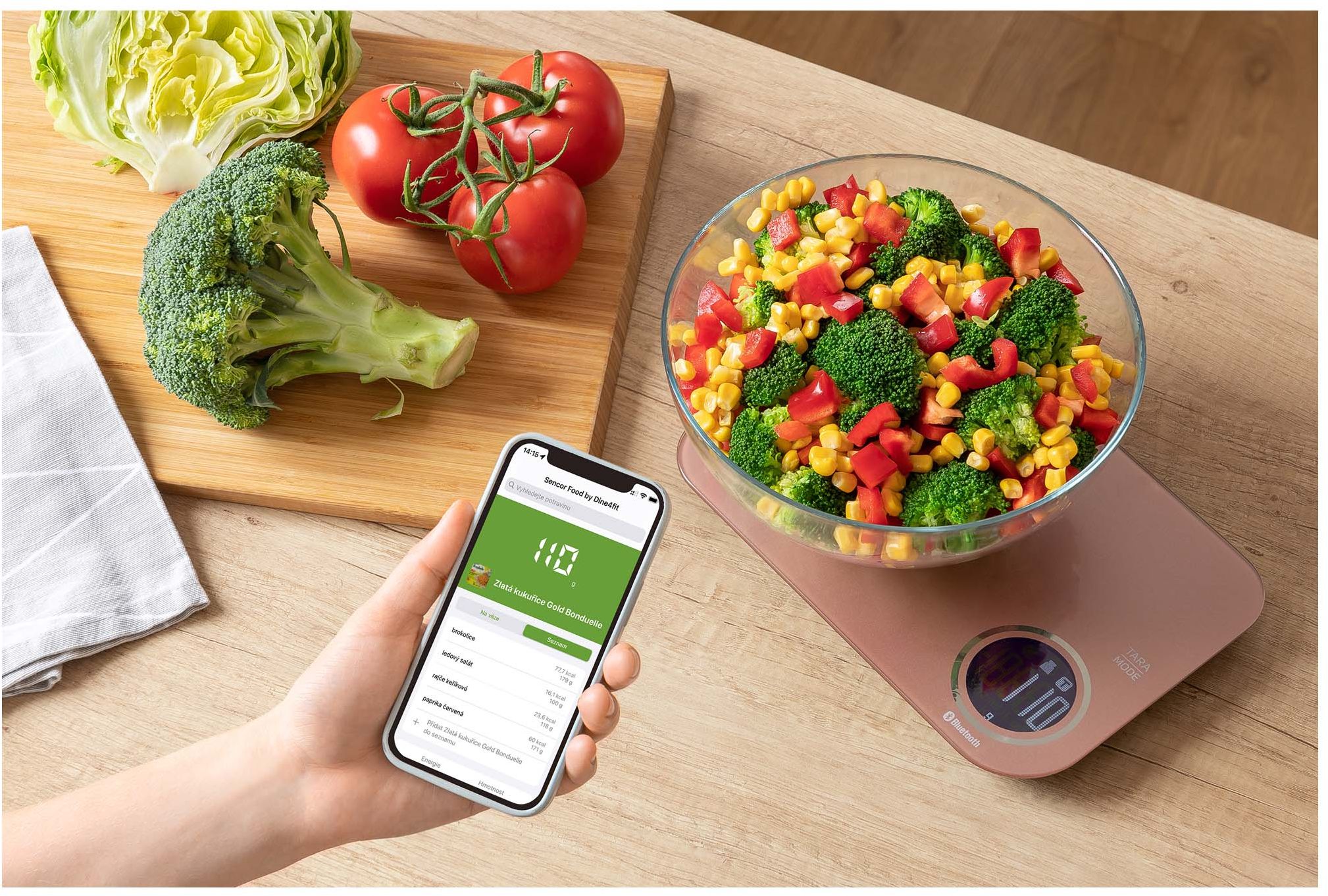 Waga jest wyposażona w technologię bezprzewodową Bluetooth, która w połączeniu z bezpłatną aplikacją Sencor FOOD zainstalowaną w Twoim inteligentnym urządzeniu oferuje bezpośredni dostęp do bogatej i regularnie aktualizowanej bazy danych o produktach spożywczych i ich wartościach odżywczych.