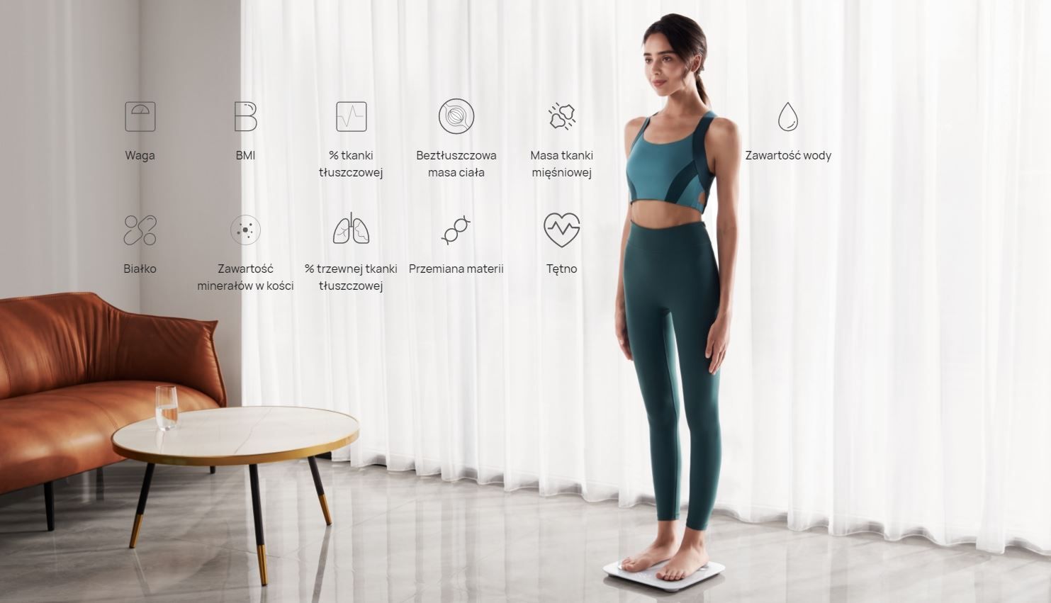 Tkanka tłuszczowa ma znacznie większą objętość od tkanki mięśniowej, dlatego skład ciała ma istotny wpływ na to, jak wyglądamy. Poszczególne parametry wpływają również na to, jak się czujemy, dlatego HUAWEI Scale 3 pozwoli Ci na bieżąco monitorować nie tylko wagę, ale również 10 innych istotnych wskaźników składu ciała.