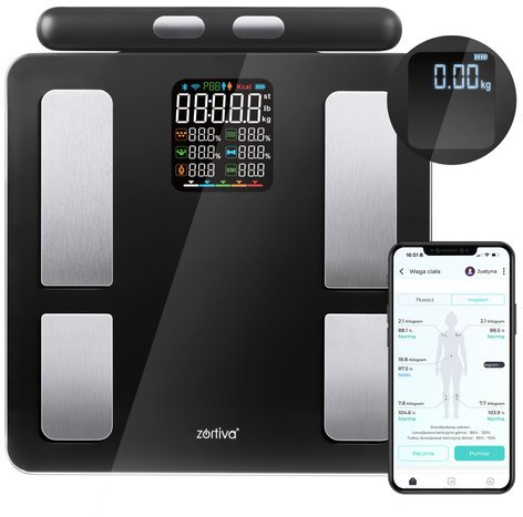 Dzięki zaawansowanej technologii, waga Zortiva umożliwia pomiar wielu parametrów zdrowotnych. Obsługuje do 16 profili użytkowników, co czyni ją idealnym rozwiązaniem dla całej rodziny. Automatyczna kalibracja oraz wskaźniki poziomu baterii i przeciążenia zapewniają wygodę użytkowania.