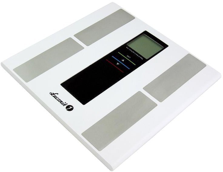 Waga elektroniczna BS-14 marki Łucznik, w kolorze biało-szarym, o maksymalnym załadunku 150 kg. Urządzenie wyposażone zostało w wyświetlacz LCD oraz platformę wykonaną ze stali nierdzewnej. Model ten posiada wskaźnik wyczerpania baterii i wskaźnik przeciążenia, a także możliwość zmiany jednostek. Zakres temperatury pracy wagi wynosi od 5 do ok. 40 st.C.