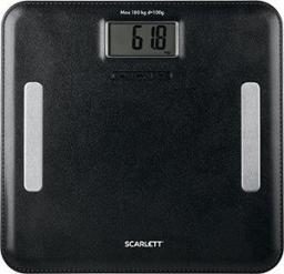 Waga łazienkowa w kolorze czarnym. Posiada czytelny wyświetlacz elektroniczny. Oprócz pomiaru masy ciała, waga umożliwia pomiar tkanki mięśniowej, tłuszczowej oraz zawartości wody w organiźmie. Maksymalne obciążenie wynosi 180 kg.