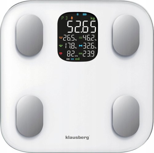 WAGA ŁAZIENKOWA Z POMIAREM TKANKI TŁUSZCZOWEJ I SKŁADU CIAŁA, SMART, BT, KLAUSBERG KB-7855 BIAŁA