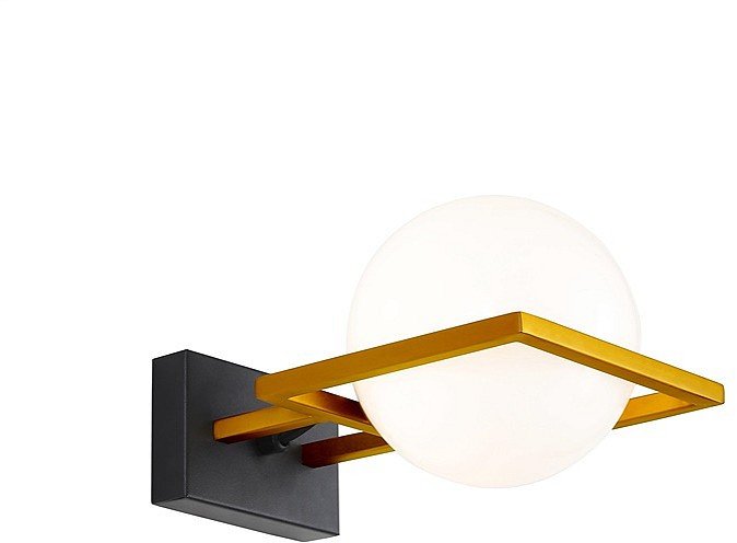 Kinkiet wyróżnia się złotym kloszem, stworzonym z metalu i szkła. Połączenie tych materiałów tworzy efektowny kontrast z czarnym korpusem, co nadaje lampie nowoczesny i elegancki wygląd. To idealny wybór dla tych, którzy pragną wprowadzić do swojego wnętrza stylowy akcent świetlny.