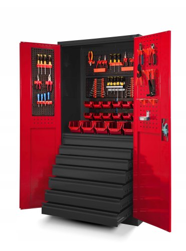 Warsztatowo-narzędziowa szafa metalowa DAREK, 920 x 1850 x 500 mm, antracytowo-czerwona