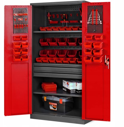 Warsztatowo-narzędziowa szafa metalowa SZYMON, 920 x 1850 x 500 mm, antracytowo-czerwona