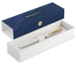 Długopis Waterman Impression w białym lakierze z złotym wykończeniem (GT) to doskonałe połączenie tradycji i nowoczesności. Jego lśniąca biała powierzchnia oraz złote detale nadają mu wyjątkowy, profesjonalny charakter, który z pewnością zwróci uwagę w każdej sytuacji. To idealny wybór dla tych, którzy cenią sobie elegancję oraz wysoką jakość wykonania.