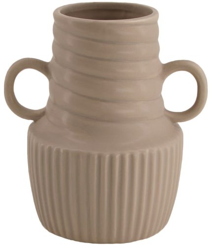 Wazon wyróżnia się starannym wykonaniem z ceramiki, co zapewnia jego trwałość oraz estetyczny wygląd. Brązowy kolor doskonale harmonizuje z różnorodnymi stylami aranżacji wnętrz, od klasycznych po nowoczesne. Dzięki swojemu interesującemu kształtowi, wazon przyciąga uwagę i staje się centralnym punktem dekoracyjnym w każdym pomieszczeniu.