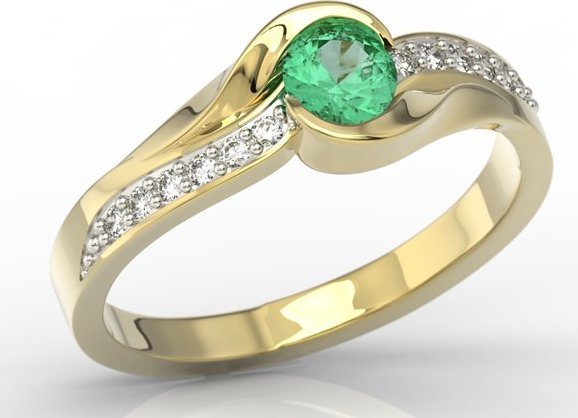 W centrum pierścionka znajduje się olśniewający szmaragd, który emanuje jasną i przejrzystą barwą. Otoczony diamentami, które dodają blasku i kontrastu, tworzy harmonijną całość. To zestawienie sprawia, że pierścionek nie tylko zachwyca, ale również ma wysoką wartość.