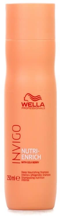 Przywróć witalność włosom suchym - sięgnij po odpowiednie kosmetyki już na etapie oczyszczania. Doskonale sprawdzi się w tej roli głęboko odżywczy szampon Wella Invigo Nutri-Enrich, który przywraca włosom pełnię energii i dostarcza im niezbędnych składników. Szampon zawiera jagody goji i kompleks Nutri-Enrich. Delikatnie oczyszcza pasma i przywraca je do dobrej kondycji. Dzięki zawartości kwasu oleinowego i pantenolu zapewnia im ponadto optymalne nawilżenie.