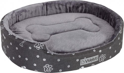 Welsti Owalne legowisko kojec dla psa Welsti szary futerko L 68x55 antypoślizgowy