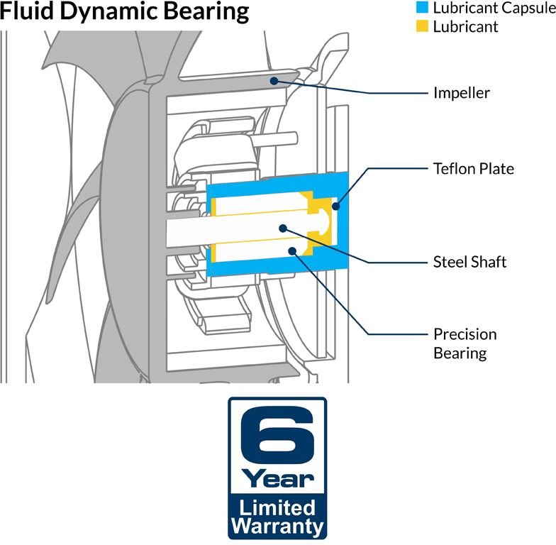 Łożysko Fluid Dynamic jest wyposażone w kapsułę olejową, która zapobiega wyciekaniu smaru. Dzięki temu łożysko to jest równie ciche jak łożysko ślizgowe, ale ma znacznie wyższą żywotność.