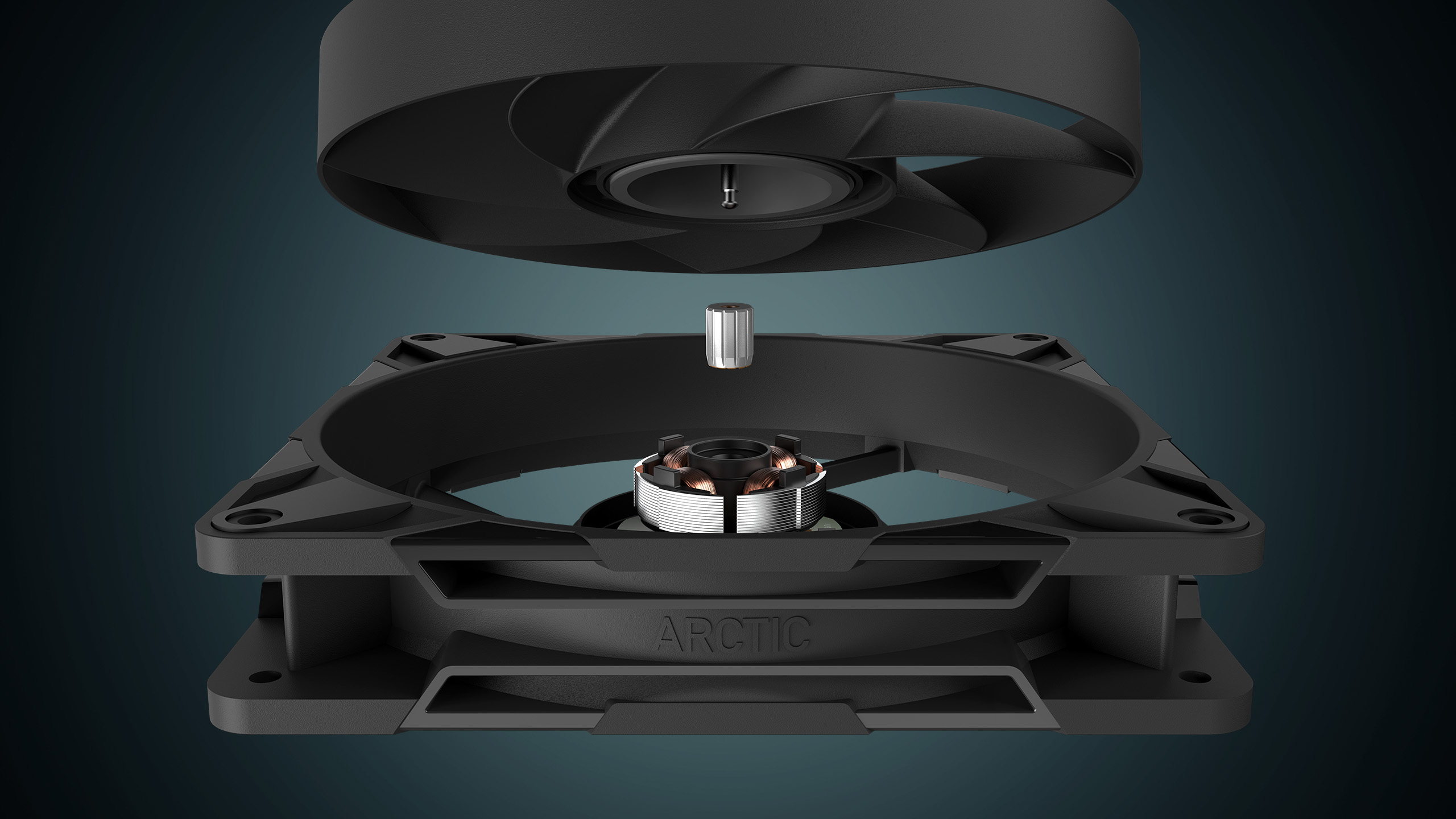 Wentylator zapewnia wyższą wydajność przy niskich prędkościach, z większym przepływem powietrza i ciśnieniem statycznym, generując przy tym zaledwie 25 dB(A) – idealne dla cichego, ale potężnego chłodzenia.