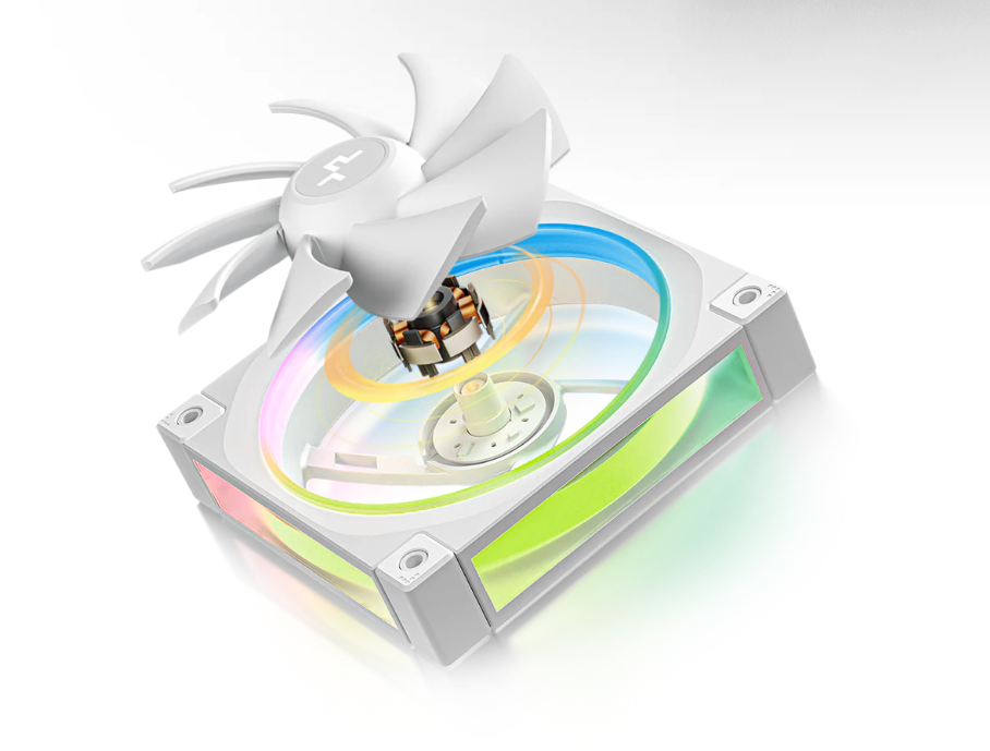 W wentylatorze DeepCool FL12 zastosowano łożysko dynamiki płynów (FDB), które minimalizuje tarcie i zużycie mechaniczne, znacząco wydłużając żywotność produktu oraz przyczyniając się do cichszej pracy. Konstrukcja wentylatora, w tym jego dynamiczna równowaga, została wzmocniona dzięki wykorzystaniu ulepszonego materiału kompozytowego na bazie PBT (Politereftalan butylenu). To sprawia, że wentylator jest trwały i wytrzymały nawet podczas intensywnej, długotrwałej pracy. Ponadto, gumowe podkładki antywibracyjne w każdym rogu ramy wentylatora dodatkowo redukują drgania, minimalizując hałas.