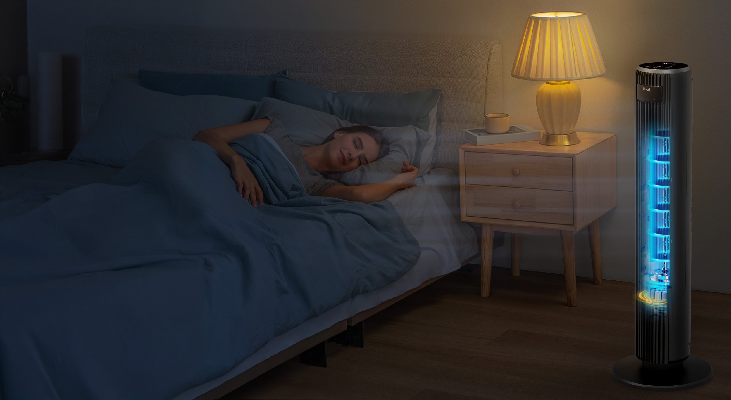 Z poziomem emitowanego dźwięku wynoszącym zaledwie 20 dB w trybie nocnym, Levoit TempSense 36 DC jest praktycznie niesłyszalny. Idealny do sypialni, pokoju dziecięcego czy domowego biura. Podświetlenie ekranu jest wyłączane, a timer pozwala ustawić czas działania urządzenia - Ty śpisz spokojnie, a wentylator sam się wyłączy.