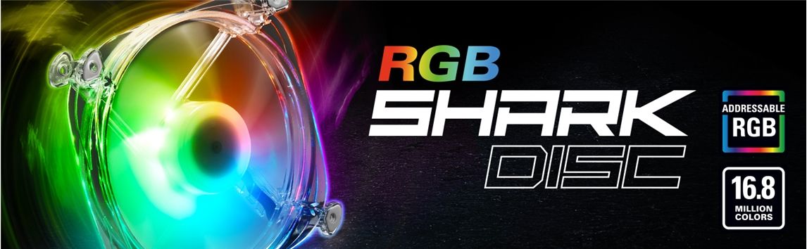 SHARK Disc to 120-milimetrowy wentylator LED RGB, który zapewnia stały przepływ powietrza. A dzięki dziewięciu adresowalnym diodom LED RGB wprowadzi również powiew świeżego powietrza do wnętrza obudowy komputera, gwarantując imponujące efekty świetlne. Ponadto, za pomocą gumowanym punktom styku, wibracje nie są przenoszone na budkę, co daje cichą pracę.