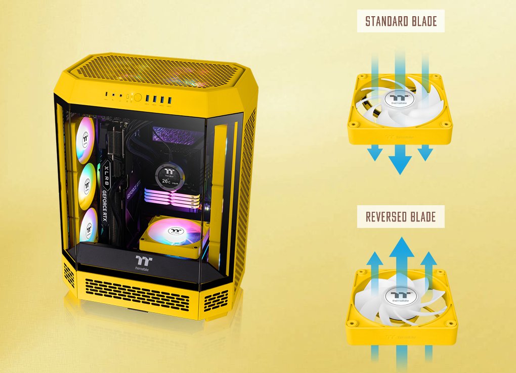 Wentylator z odwróconymi łopatkami umożliwia przepływ powietrza od tyłu do przodu, jednocześnie w pełni eksponując efekty świetlne. Już nie musisz rezygnować z estetyki na rzecz kierunku przepływu powietrza!