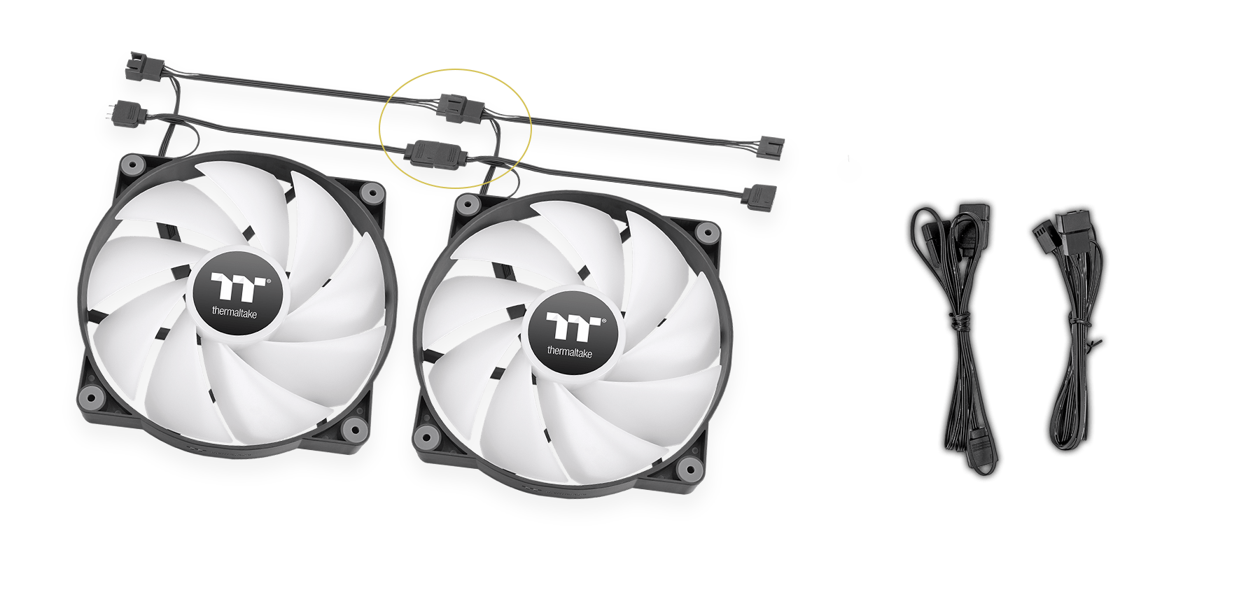 Wentylator wykorzystuje system łączenia łańcuchowego Daisy-Chain. Taka konstrukcja pozwala na bezpośrednie łączenie ze sobą kolejnych wentylatorów, co znacząco zmniejsza zapotrzebowanie na złącza 4-pin PWM oraz 3-pin ARGB na płycie głównej. Zastosowanie tego rozwiązania skraca odległości między przewodami i ułatwia porządkowanie wnętrza komputera. W zestawie znajduje się dedykowany kabel PWM o długości 900 mm, a także kabel ARGB o długości 900 mm.