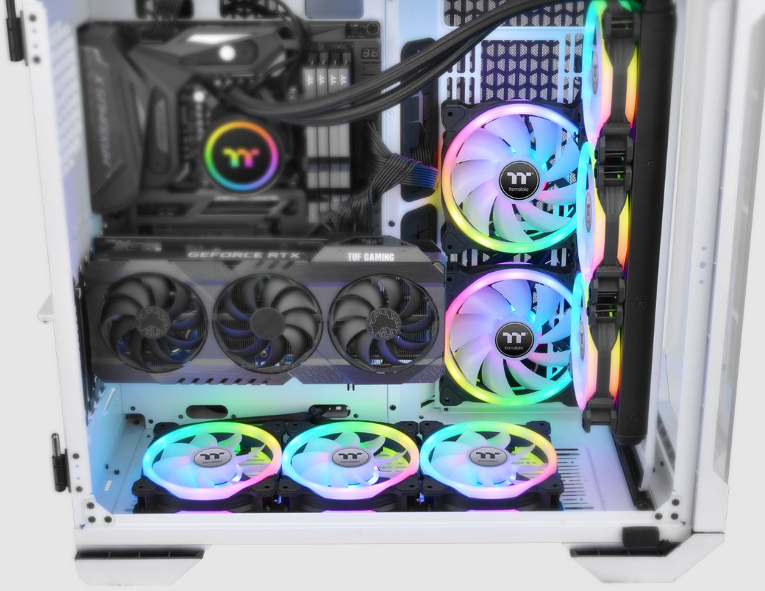 Rozświetl swój komputer niemal nieograniczonymi możliwościami i zsynchronizuj produkty kompatybilne z TT RGB PLUS (bloki wodne CPU / VGA, chłodzenie procesora AIO, zasilacze, paski LED, klawiatury do gier, zestawy słuchawkowe, myszy i podkładki pod mysz), aby stworzyć unikalny system RGB - unikalny dla Ciebie.