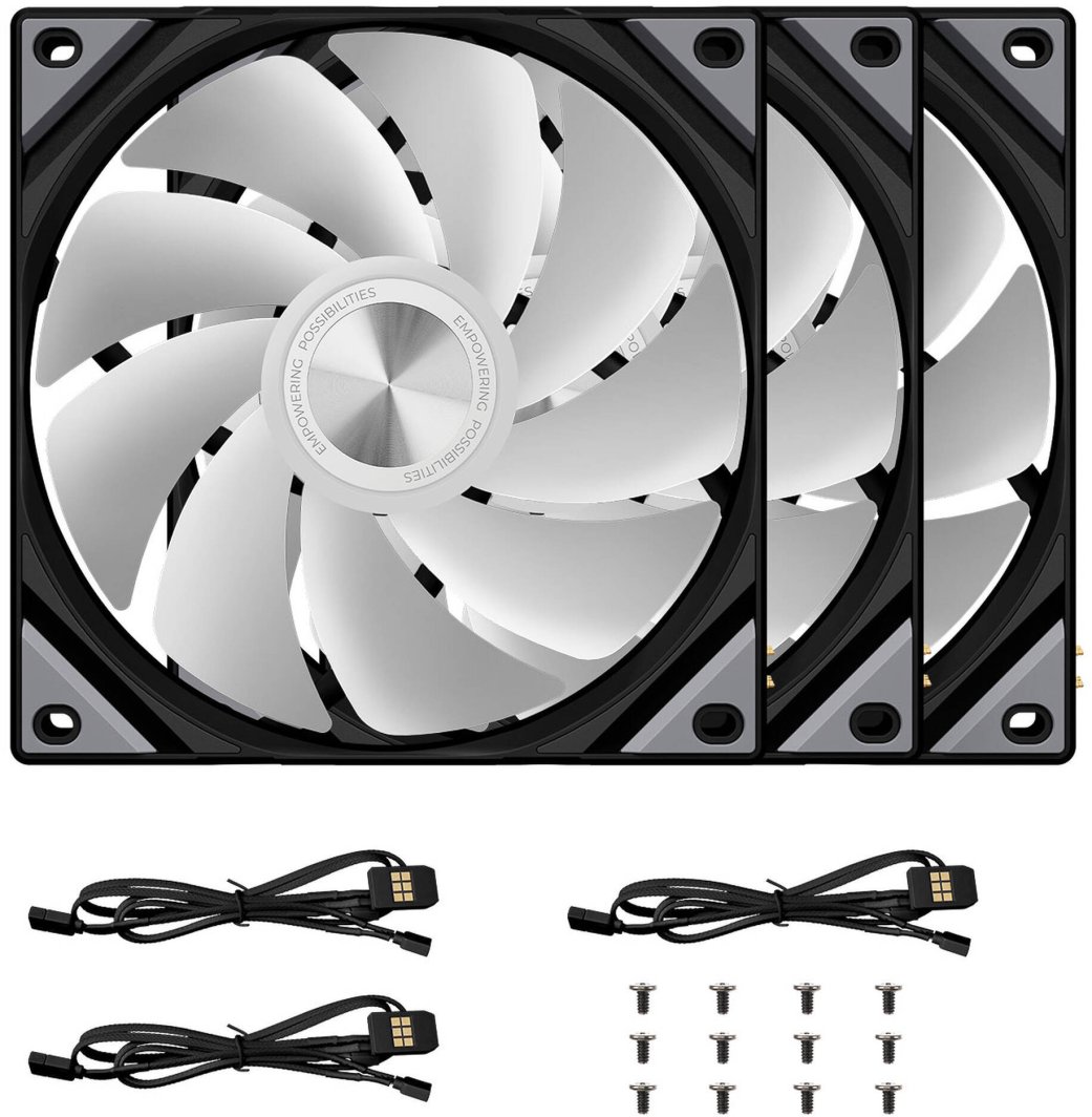 Każdy wentylator ma wymiary 120 × 120 × 25 mm, co sprawia, że idealnie pasuje do standardowych miejsc montażowych w obudowach komputerowych. Całkowita waga zestawu wynosi 0,20 kg, co czyni go lekkim i łatwym w obsłudze.