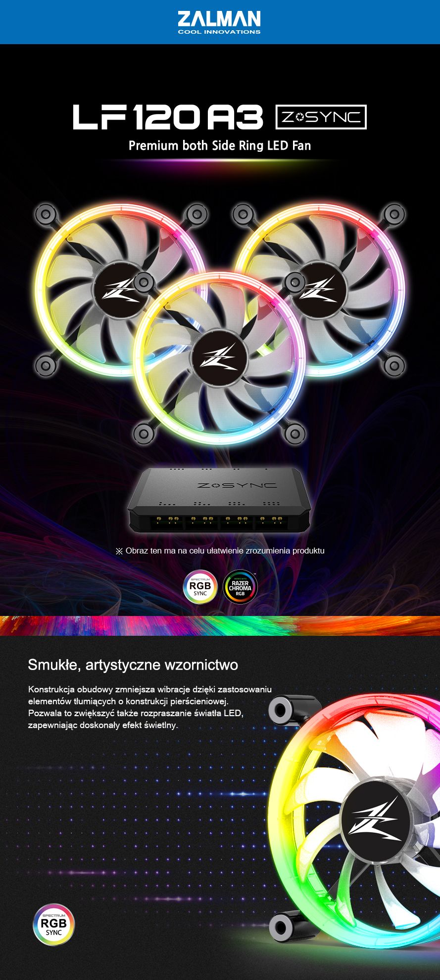 Wentylator Zalman LF120A3 3-pack + Kontroler Z-SYNC (ZM-LF120A3)
