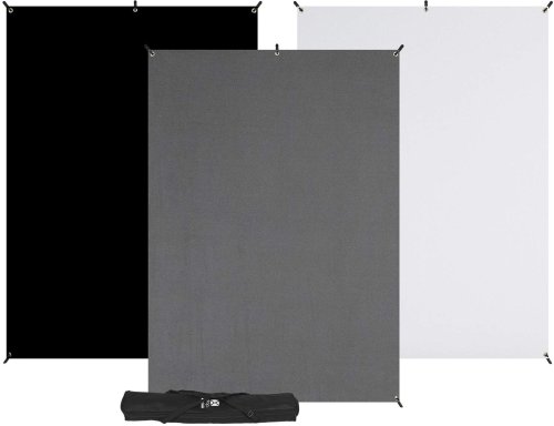W skład zestawu wchodzą trzy tła w różnych kolorach: białym, czarnym i szarym. Dzięki temu masz możliwość dostosowania tła do charakteru sesji zdjęciowej, co otwiera drzwi do większej kreatywności i różnorodności w Twoich projektach fotograficznych.
