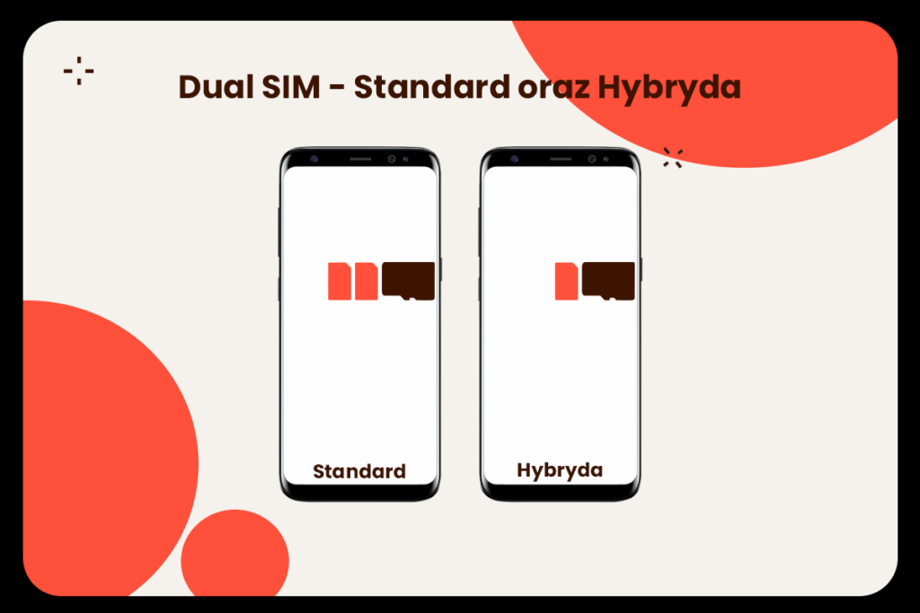 Przy zakupie telefonu ze standardem Dual SIM, należy pamiętać, że smartfony charakteryzują się dwoma typami wejść: standardowymi i hybrydowymi. W przypadku tego pierwszego możliwe jest użytkowanie jednocześnie dwóch kart SIM oraz dodatkowej pamięci SD, a w drugim znajdują się wyłącznie dwa sloty i to od Ciebie zależy, czy włożysz tam dwie karty SIM, czy kartę SIM oraz SD.