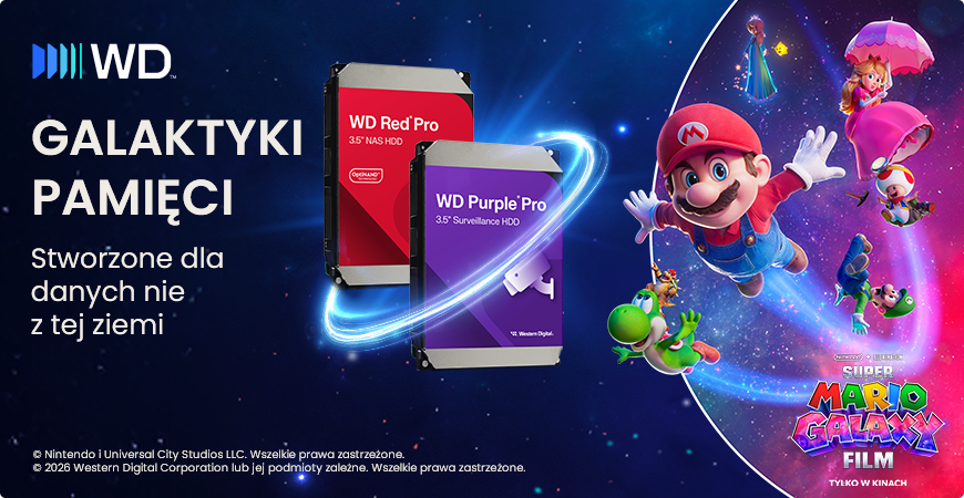 Zabezpieczenie domowej lub firmowej infrastruktury to misja wymagająca odpowiednich narzędzi. Zamiast polegać na półśrodkach, wyposaż swoje serwery w sprzęt nie z tej ziemi! W ramach akcji "Galaktyki pamięci", towarzyszącej premierze filmu Super Mario Galaxy, prezentujemy wewnętrzne dyski twarde WD, które sprostają najbardziej wymagającym obciążeniom.