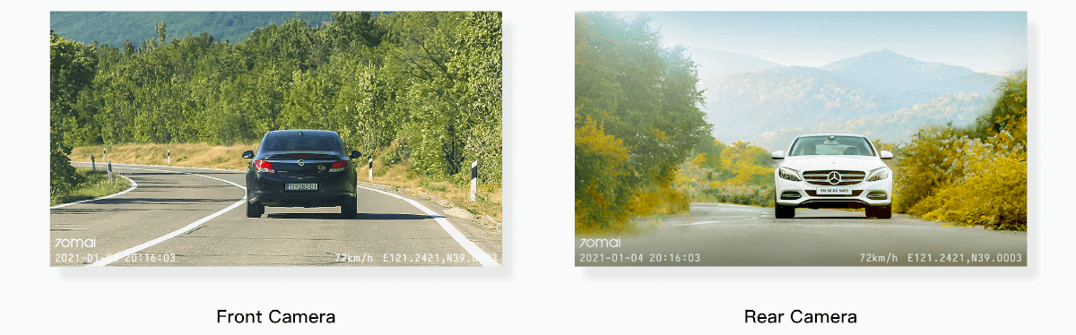 Kompatybilny z tylną kamerą RC06, A800S może nagrywać dwukanałowo*, zapewniając ochronę z przodu i tyłu pojazdu, dzięki czemu możesz spokojnie prowadzić.