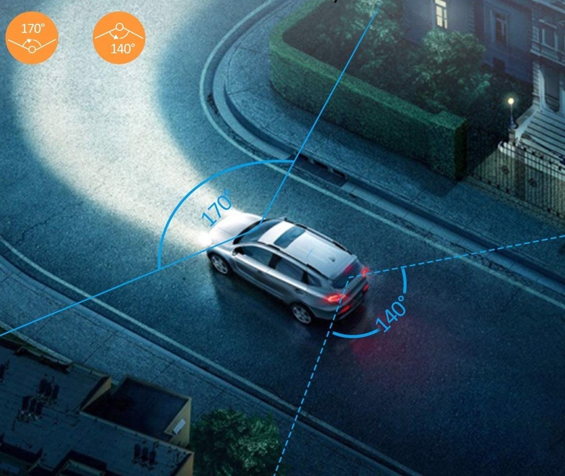 Obiektyw wideorejestratora Feegar Patrol nagrywa obraz w zakresie 170 stopni, dzięki czemu urządzenie widzi wszystko co dzieje się przed Twoim autem na obu pasach drogi. Kamera tył nagrywa w zakresie 140 stopni.